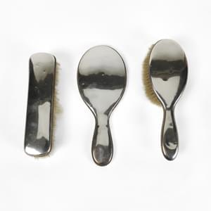 Argent, comprenant: un miroir et deux brosses, dim. de 18 à 24 c...