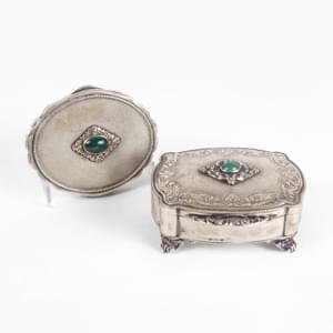 3804. Poudrier et boîte à cigarette à cabochon de malachite