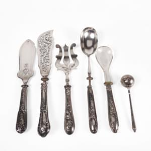 Pierre Quielle, France, argent, couteaux assortis à manche en iv...