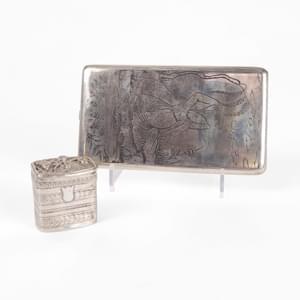 3842. Un porte-cigarettes, une boîte, un cendrier et un vide-poches à...