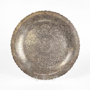3869. Coupe et plateau de présentation à bordure d'enroulements stylis...