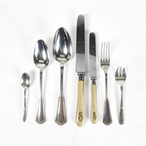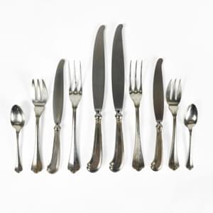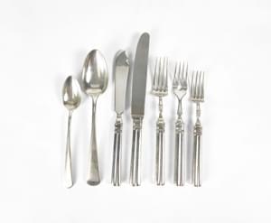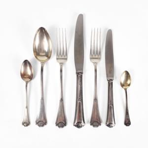 Argent, comprenant: 12 cuillères, 12 fourchettes et 12 couteaux...