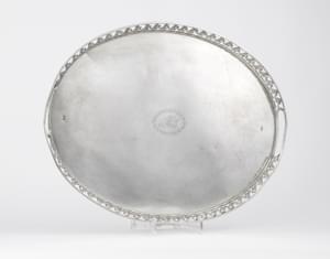 3864. Plateau de service ovale à bordure ajourée rinceaux