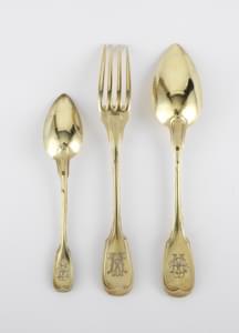 France, vermeil, comprenant: 12 fourchettes et 12 cuillères à en...