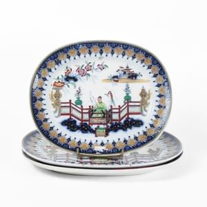 3890. Trois plats ovales à décor de scène chinoise, modèle Penang