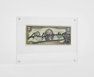 Two dollars, billet K05739643A, sous plexiglass, avec certificat...