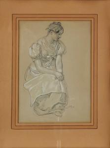 Etude de femme en robe, mine de plomb, 25,5x14,5 cm