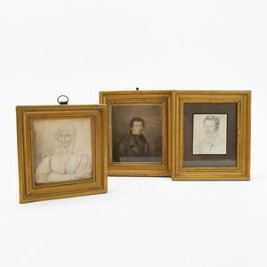 Trois portraits, mine de plomb sur papier, L de 10 à 12 cm