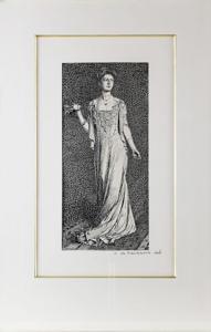 Portrait d'une jeune fille, estampe sur papier, 22x18 cm