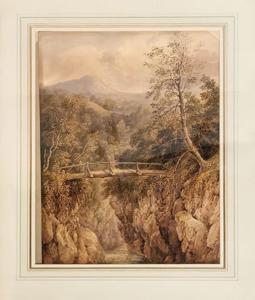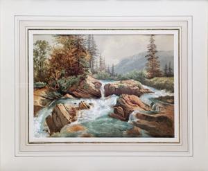 Vue de montagne, aquarelle sur papier, signée et datée 1970, 33x...