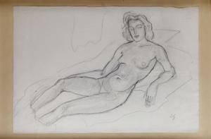 Nu féminin, mine de plomb sur papier, monogrammée, 38x48 cm