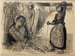 Etude de paysannes, fusain sur papier, 40x52 cm