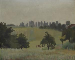 Paysage de campagne, aquarelle sur papier, signée, 34x41 cm