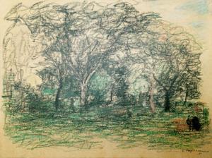 La Belotte, sanguine et gouache sur papier, signé et daté 1937,...