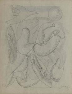 Silhouettes, mine de plomb sur papier, signée et datée 35, cache...