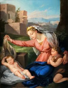 Sainte Famille et Vierge à l'Enfant avec Saint Jean, paire d'hui...