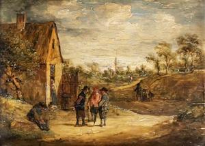 Scènes animées, paire d’huiles sur panneau, 19x15 cm. Provenance...