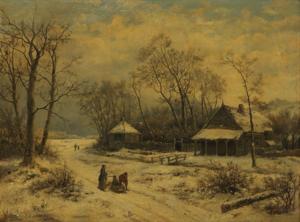 Paysage hivernal animé, huile sur toile, 60x80 cm