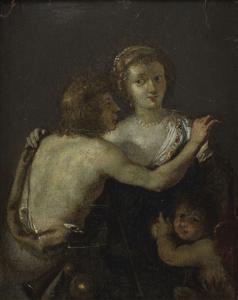 Allégorie du printemps, huile sur toile, 65x82 cm. Cadre en bois...