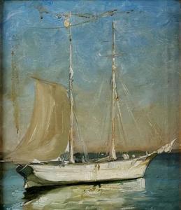 Voilier sur le lac Léman, huile sur carton, signée, 28,5x18 cm