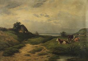 Vaches en Normandie, huile sur toile, signée, 145x204 cm