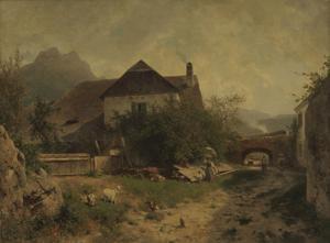Ferme, huile sur toile, signée et datée 1891, 39x52 cm