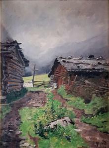 Mazots dans la montagne, huile sur toile, signée et datée 94, 50...