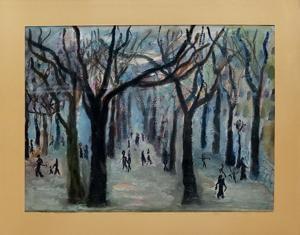 Promenade dans un parc, huile sur papier, 25x34 cm