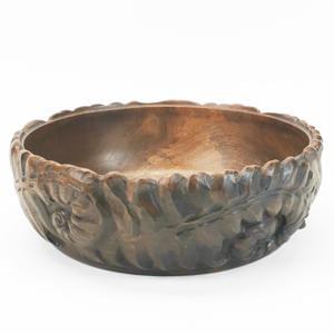 Grand bol à décor de fougères, hêtre, signé, D 34 cm