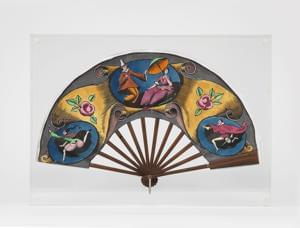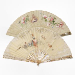Eventail à décor peint de chinoiseries, aquarelle et gouache sur...
