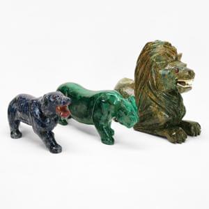 Malachite, lapis-lazuli et jaspe sculpté, L de 18 à 23 cm