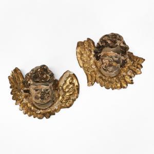 Bois sculpté à décor de chérubins, H 33,5 cm