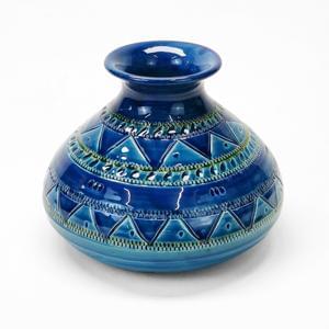 Vase, faïence émaillée en Blu Rimini, H 17 cm