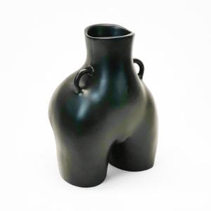 Vase rouleau, faïence émaillée noire, H 18 cm