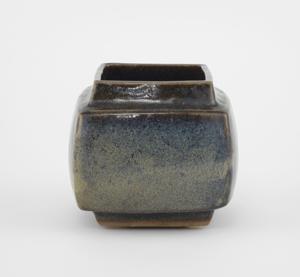 Vase à section carrée, grès émaillé dans les tons bruns et bleus...