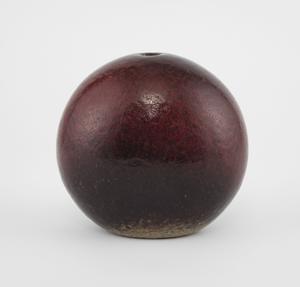 Vase boule, céramique émaillée rouge, signé, H 26 cm