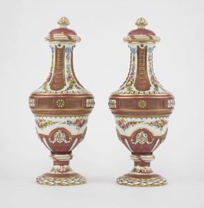 4567. Paire de vases dans le style de Sèvres à décor de fleurs sur fon...