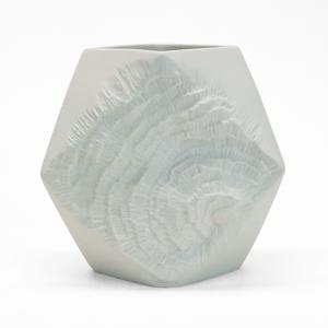 Grand support décagonal, céramique émaillée ivoire craquelée, si...