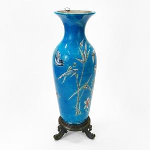 Céramique à motifs floraux émaillés bleu, H 20 cm