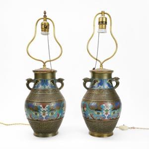 Bronze et émaux polychromes à motifs floraux et de chauve-souris...