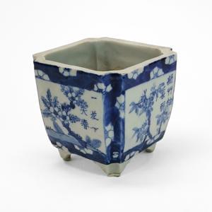 Porcelaine émaillée bleu blanc à décor de fleurs, H 31 cm. On jo...