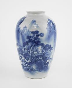 Porcelaine émaillée bleu à motif d'un paysage, H 32 cm