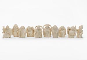 4754. Collection de neuf netsukes figurant des immortels et des person...
