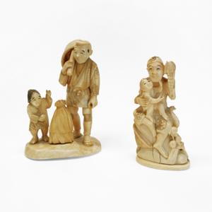 4750. Deux netsukes figurant un groupe avec personnages et animaux, Ja...