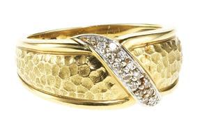 3203. *Bague bandeau à motif martelé centré d'une ligne de diamants