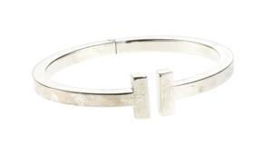 3204. Tiffany & Co, bracelet jonc ouvrant à motif de "T"