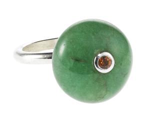 3208. Bague sertie d'un disque d'émeraude centré d'un petit saphir ora...