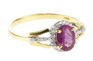 L'un centré d'un rubis taille ovale (env. 0,4 ct) entouré de dia...