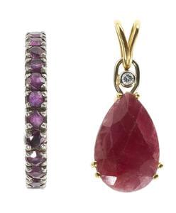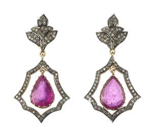 Les premières centrées chacune d'un rubis taille poire entouré d...