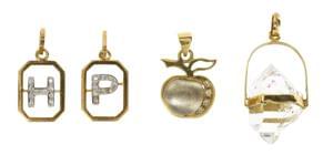 L'un retenant un cristal de roche poli, l'un à motif de pomme se...